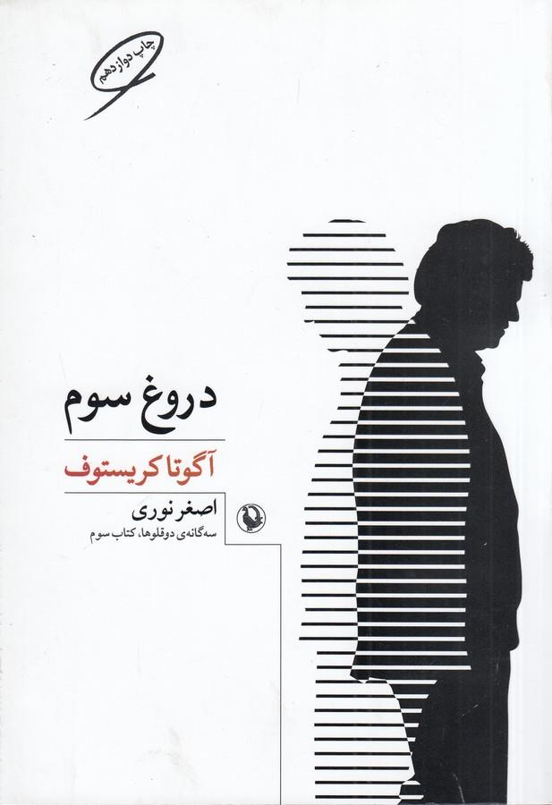 این اثر سومین جلد از سه گانه داستانی آگوتا کریستوف با عنوان «دروغ سوم» با ترجمه اصغر نوری است. دو جلد نخست از این تریلوژی با عنوان «دفتر بزرگ» و «مدرک» پیش از این توسط این مترجم در ایران منتشر شد. کریستف نخستین جلد از این تریلوژی را در سال ???? و به زبان فرانسه منتشر کرد که برای وی جایزه ادبی کتاب اروپا را به ارمغان آورد و در ادامه و با انتشار دو مجلد دیگر این تریلوژی منجر به ترجمه آنها به بیش از ?? زبان دنیا شد. رمان «دروغ سوم» به عنوان سومین مجلد از این تریلوژی پس از انتشار برای نویسنده خود جایزه کتاب بینالمللی «انتر» را در سال ???? به ارمغان آورد. بخشی از «دروغ سوم» که پشت جلد کتاب آمده است: «در جوابش میگویم که من تلاش میکنم قصههای واقعی بنویسم ولی، یکدفعه، قصه به خاطر همان واقعی بودنش غیرقابل تحمل میشود، از این رو مجبور میشوم عوضش کنم. به او میگویم که من تلاش میکنم قصه زندگیام را تعریف کنم، ولی نمیتوانم، جرأتش را ندارم، خیلی عذابم میدهد. آن وقت، همه چیز را خوشگل میکنم و اتفاقها را نه آنطور که افتادهاند، بلکه جوری تعریف میکنم که دلم میخواست بیفتند. میگوید:_ بله، زندگیهایی هست که از غمگینترین کتابها هم غمانگیزترند.»
